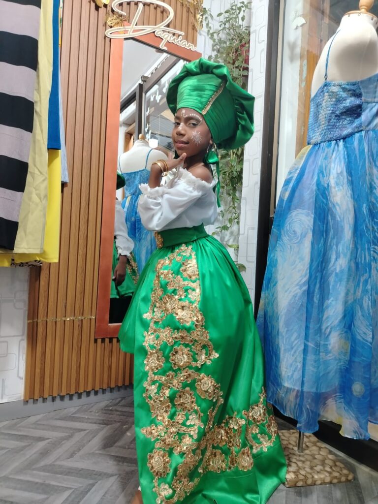 En medio de todo eso llegaron los trajes afro. Primero fue uno para una niña que necesitaba vestuario para una dramatización. Luego empezaron a pedir más. Hace unos meses los publiqué y comenzaron a escribirme desde Guayaquil, Borbón y San Lorenzo. Personas que viajan cuatro o cinco horas para confiar en nosotras. Eso me llena de emoción como no tienen idea.