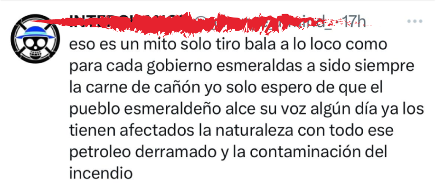 Mientras la población esmeraldeña lidia con contaminación, precariedad, miedo y duelo, el relato mediático vuelve a insistir en una lógica ya conocida: más fuerza, más armas, más guerra.
