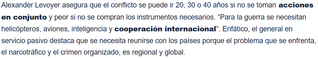Desde que Levoyer asumió la comandancia de la Fuerza de Tarea Conjunta Esmeraldas en 2022 hasta hoy, con la última inversión por el gobierno actual demuestra que el problema no es la ausencia de un arsenal militar, sino la ausencia de planificación, de políticas integrales y de voluntad para abordar las causas estructurales de la violencia.