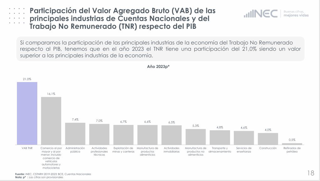 INEC. (2025). Cuentas Satélite del Trabajo No Remunerado de los Hogares (CSTNRH) 2019-2023. Recuperado en: https://www.ecuadorencifras.gob.ec/cuenta-satelite-del-trabajo-no-remunerado/
