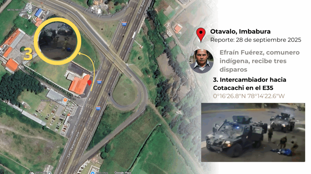 El 28 de septiembre, la indignación alcanzó un nuevo umbral. En Cotacachi, Efraín Fuérez, comunero kichwa de 46 años, padre de familia, maestro de construcción y dirigente comunitario cayó abatido. La CONAIE lo denunció como víctima de un disparo militar.