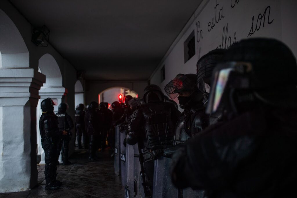 El 30 de septiembre en Imbabura, el ruido metálico de un tanque fue acallado por las voces de los comuneros. “Kaparipanchi”, gritaron los hombres y las mujeres mientras rodeaban los vehículos militares. “Pacíficamente, compañeros, pacíficamente”, se escuchaba decir en transmisión en vivo desde cuentas ciudadanas y medios comunitarios en San Rafael, cantón Otavalo, provincia de Imbabura. “¡¿Cómo que no hagan bulla?, asesinos! Eso no escuchan, no saben escuchar al pueblo”. Los uniformados caminan cargando los fusiles que apuntan al suelo. Los comuneros los obligaron a salir de su territorio, espacio vital y sagrado de los pueblos originarios. Entre las lágrimas de las mujeres, las voces multiplicaban el mismo reclamo: “¡Mataste a mi gente!”.